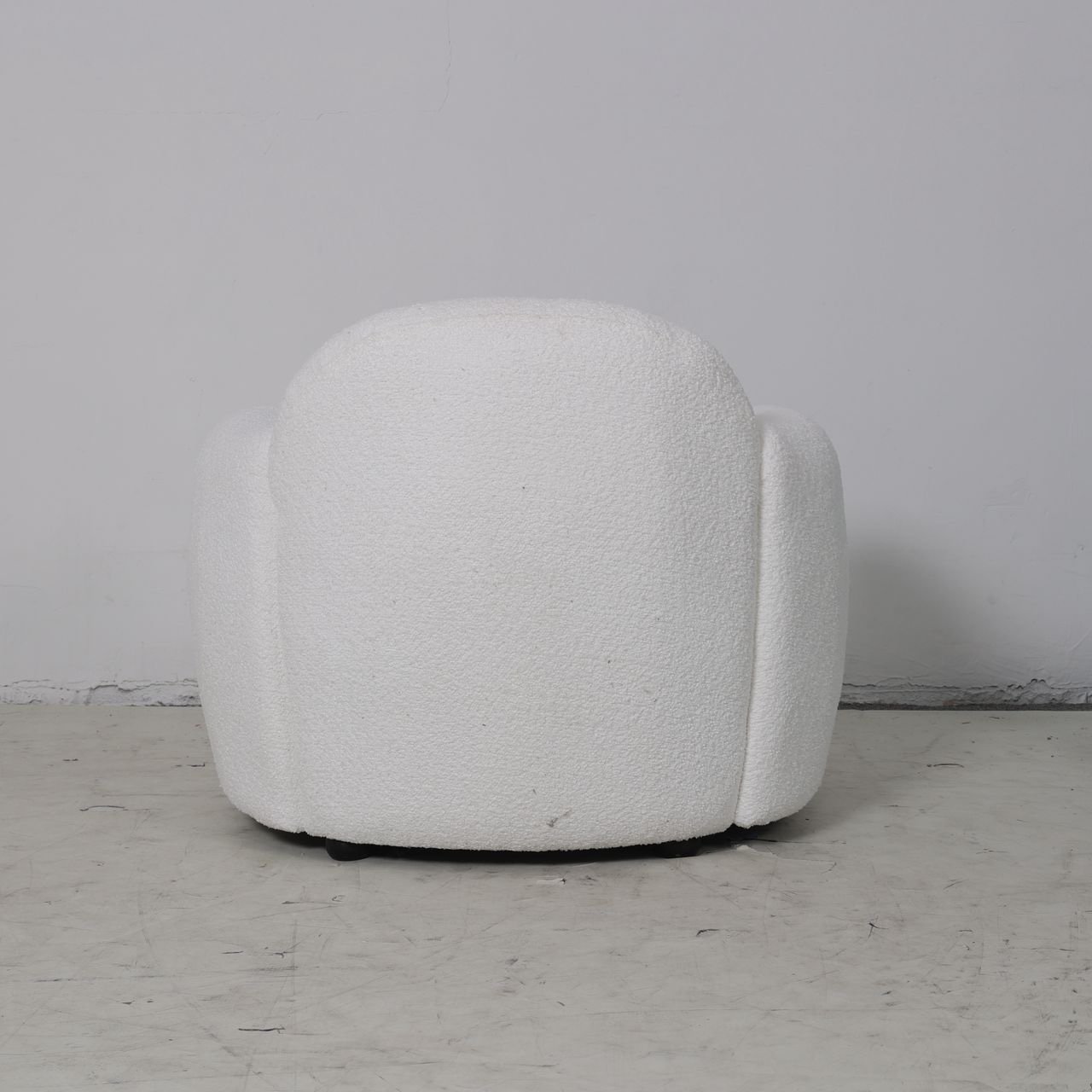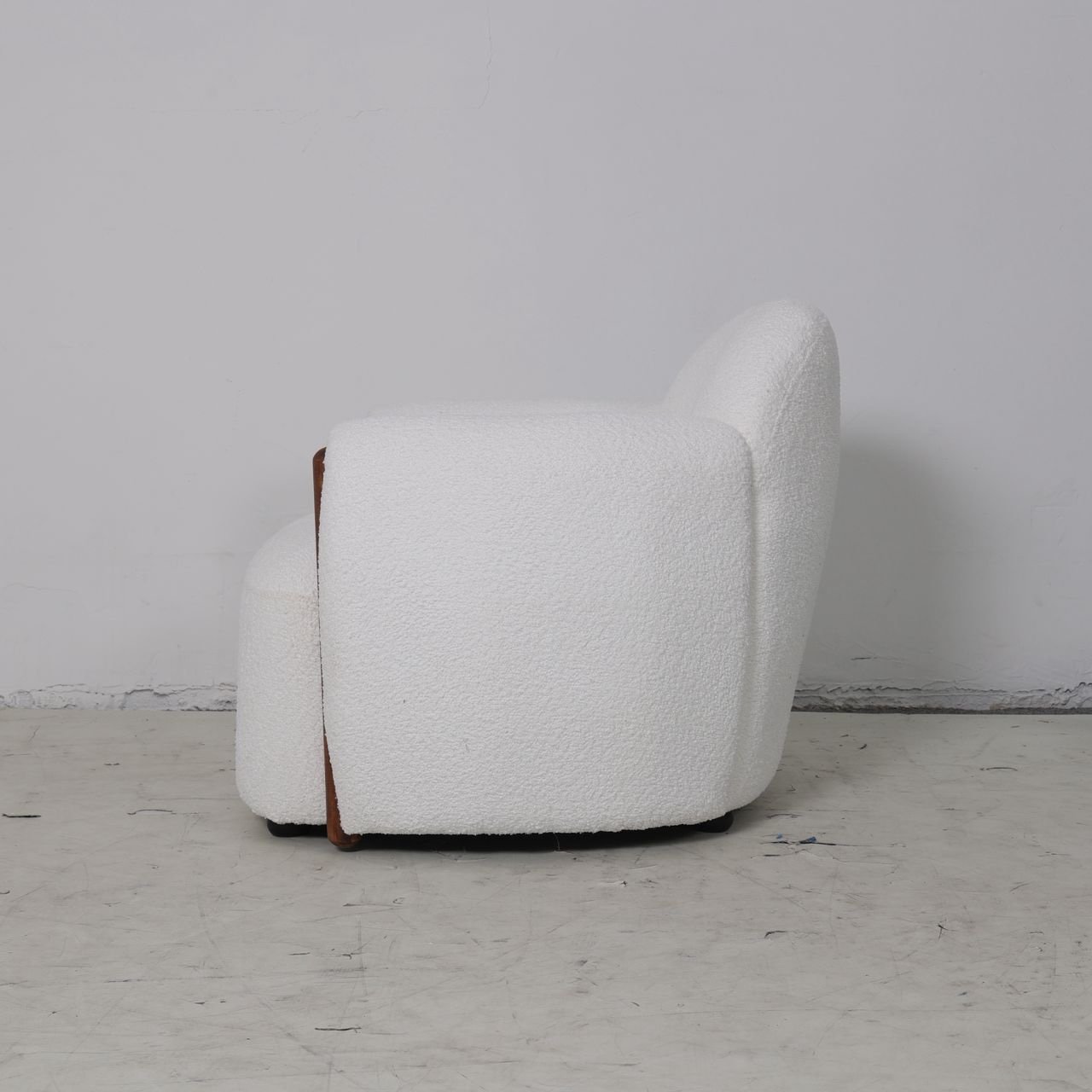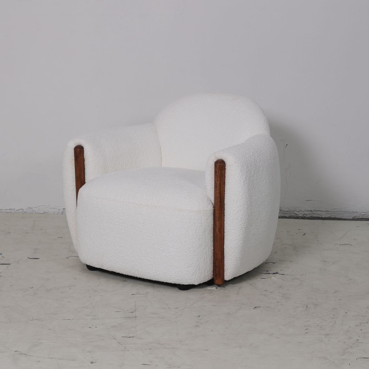 כורסא עוטפת ונעימה בעיצוב מודרני עם נגיעות חמימות של עץ טבעי.