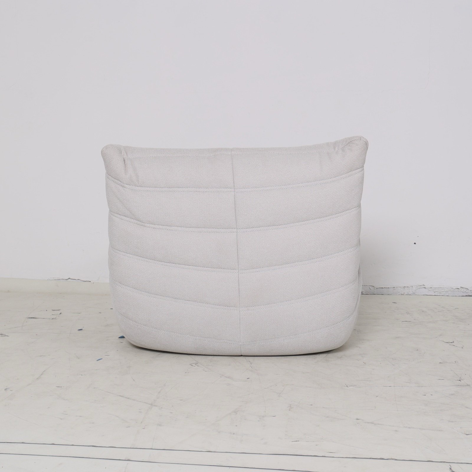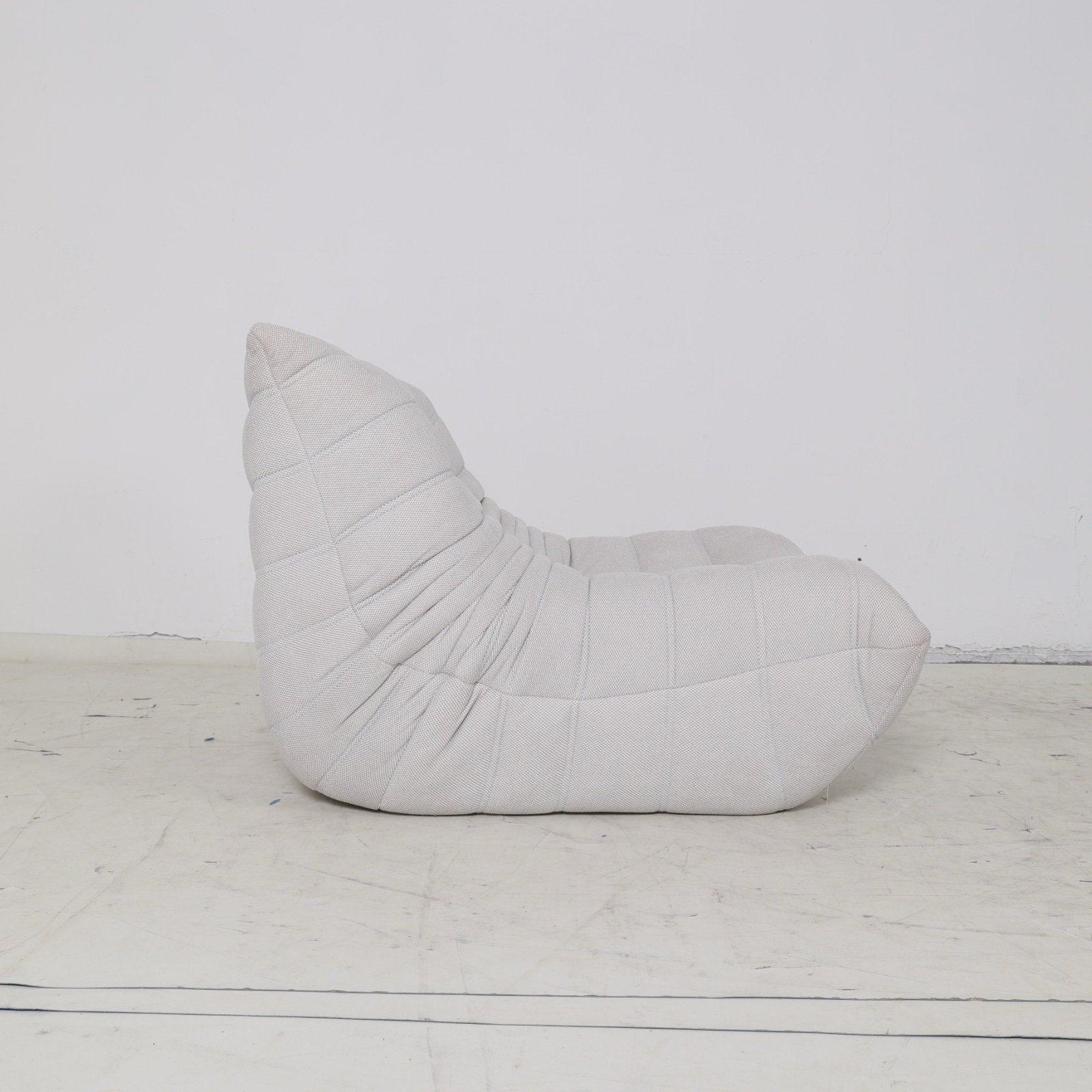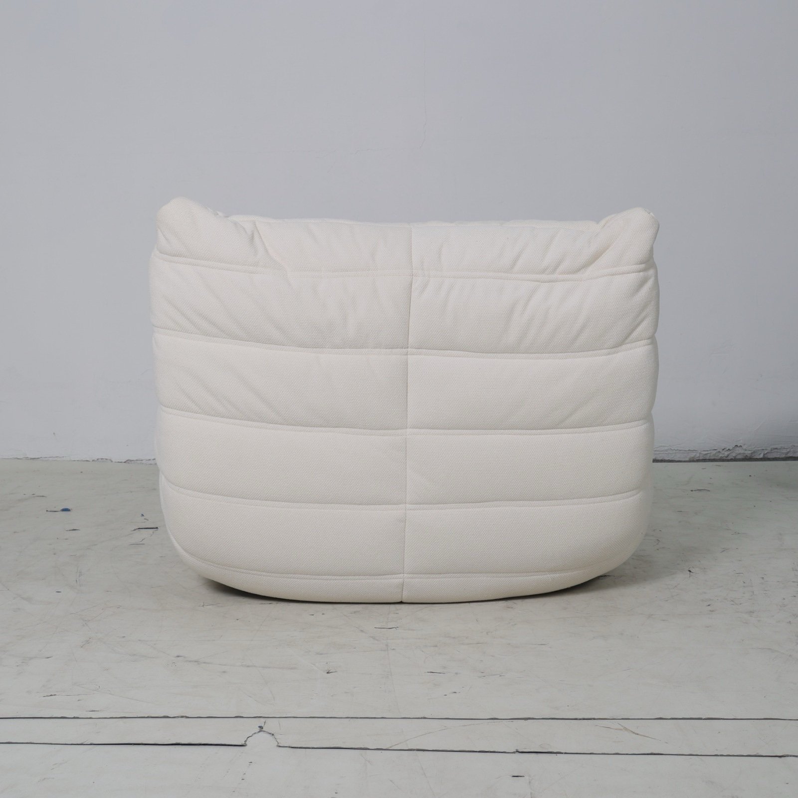כורסא מודרנית בסגנון צעיר ונינוח, עם עיצוב ייחודי של תפרים אופקיים המקנים לה מראה אלגנטי וקליל.