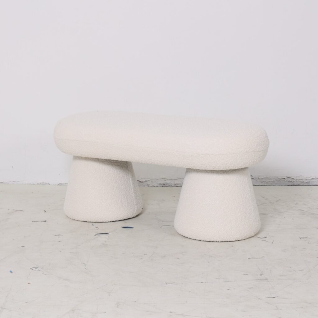 ספסל עיצובי מרשים שמשדר ייחודיות ואלגנטיות. בזכות הקווים המעוגלים והבד הרך למגע,